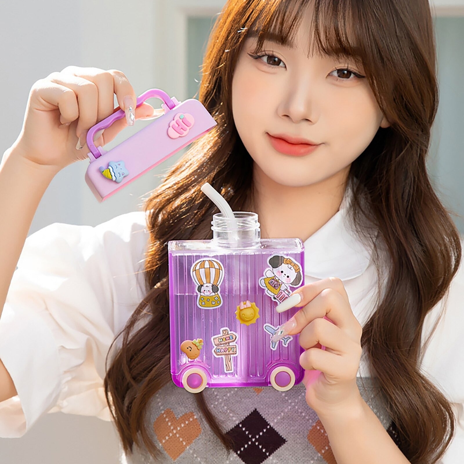 This cute Suitcase Water Bottle is the perfect companion for kids! This adorable little suitcase, available exclusively at our gifting store Tinyminymo, is designed to add convenience and fun to your journeys. The Cute Suitcase Water Bottle is crafted to resemble a miniature suitcase, completed with a handle and little wheels, making it incredibly easy to carry and transport. Its compact size ensures it fits perfectly in your backpack or handbag, so you can take it wherever you go.