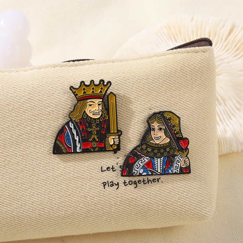 This lapel pin is not just an accessory; it's a symbol of regality that imparts a royal touch to your ensemble. Whether you're attending a party or simply want to stand out in a crowd, the Poker King and Queen Lapel Pin adds a touch of sophistication and charm. The versatility of this accessory allows you to attach it to your backpack, giving your everyday items a touch of elegance.