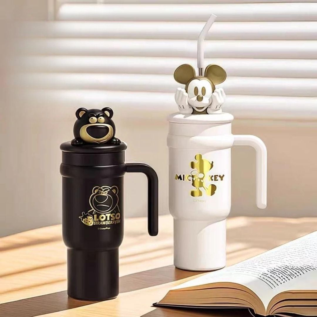 Say hello to the Character Insulated Premium Sipper, a stylish, functional and high-capacity bottle designed to fit effortlessly into your daily routine. Whether you're powering through classes, juggling office meetings, working out or traveling, this sipper is built to keep up. With two adorable characters — Lotso (Black Edition) and Mickey Mouse (White Edition) — it brings personality, convenience and premium performance in one cute package. The advanced insulation technology keeps your drinks exactly how you want them, for hours.
