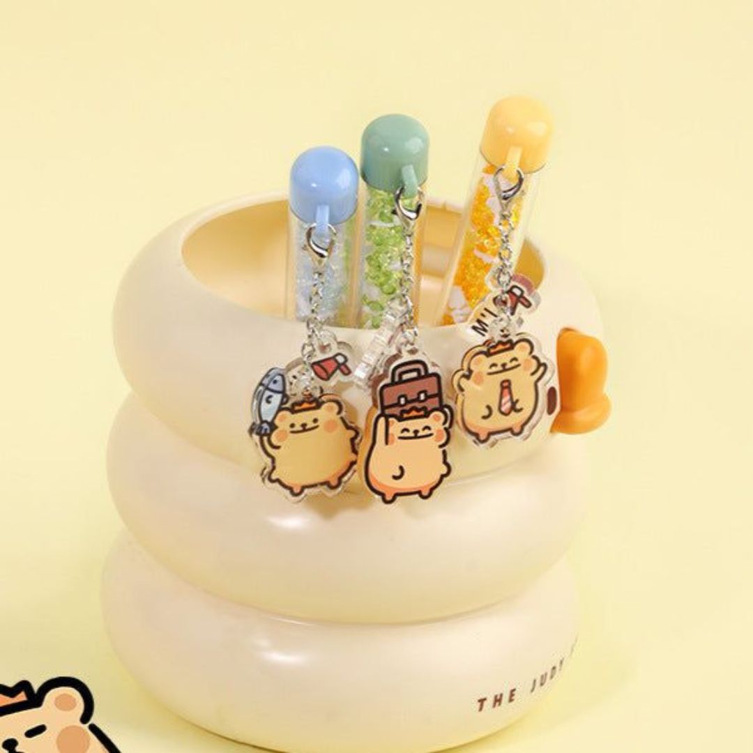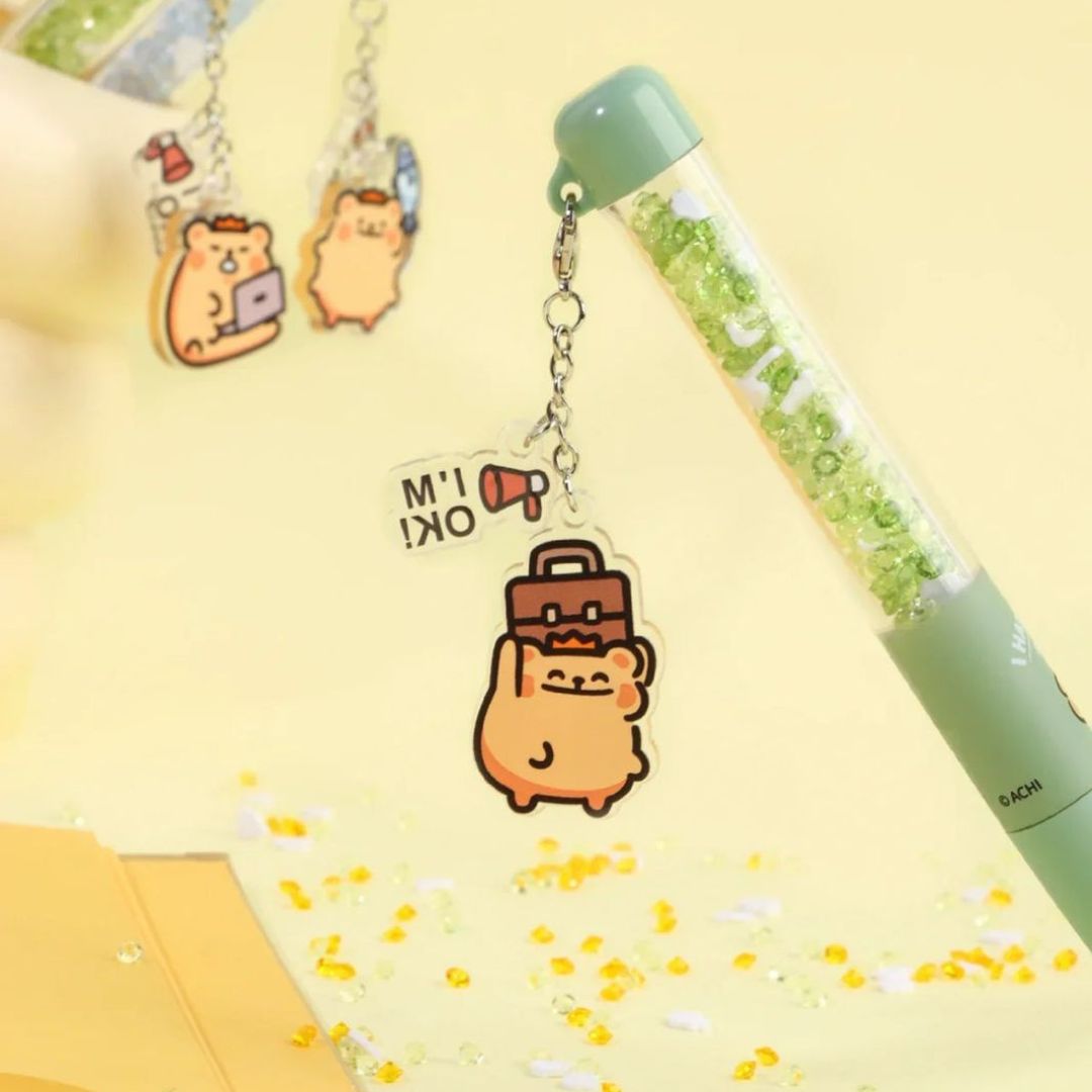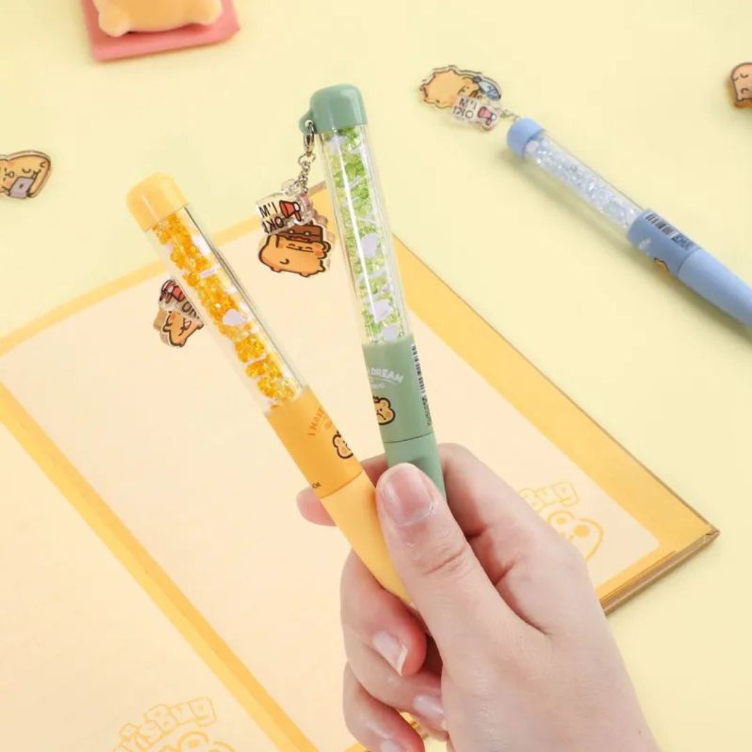 Add a touch of elegance to your everyday writing with the Crystal Bear Charm Gel Pen from Tinyminymo. Designed to make your stationery collection shine, this pen features tiny colored crystals filled inside the pen body that matches the pen’s shade — available in Blue, Yellow and Green. The shimmering crystals create a subtle sparkle every time you move the pen, while a cute little bear charm hanging from the top adds a playful and stylish finish.