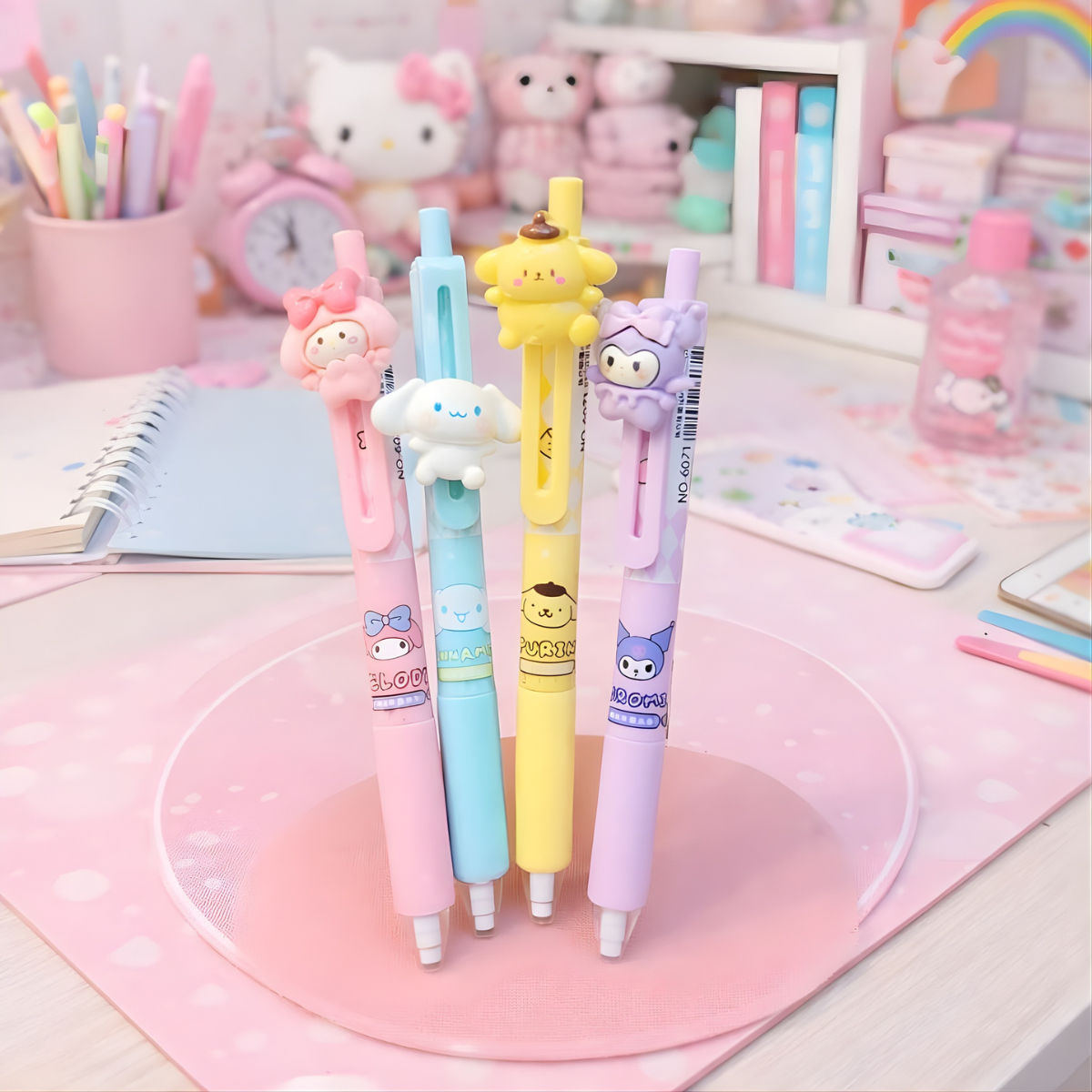 Representing the My Melody Mechanical Pencil, a cute piece of stationery that blends usefulness and uniqueness. Each pencil has a distinctive Kawaii print and comes in four enticing designs: My Melody, Cinnamoroll, Kuromi and Pompompurin. This adorable pencil is definitely a must-have for your kids and makes every writing experience magical.