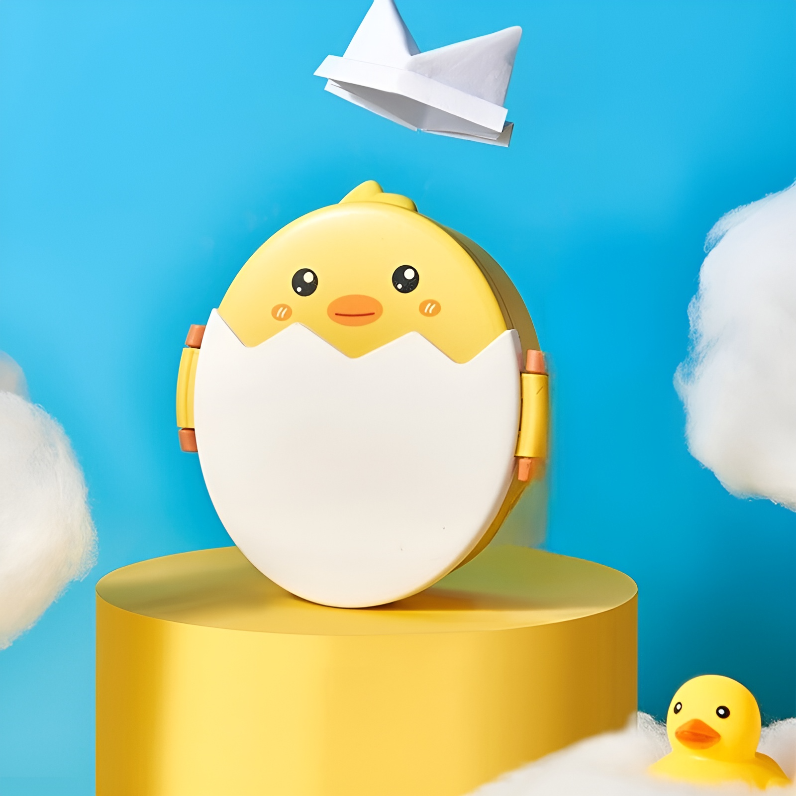 Introducing the cute Chicken Lunch Box! This Chick Lunch box is a lovely choice for kids and is bound to bring a smile to their faces. Its eye-catching design features a cute chick hatching from an egg on the lid of the lunch box, making it an instant favorite among little ones. The Chick Hatching Lunch Box is not just visually appealing; it's also highly functional. It comes equipped with three compartments, which includes two mini compartments and one spacious main compartment. This thoughtful design allows for easy separation and storage of various food items.