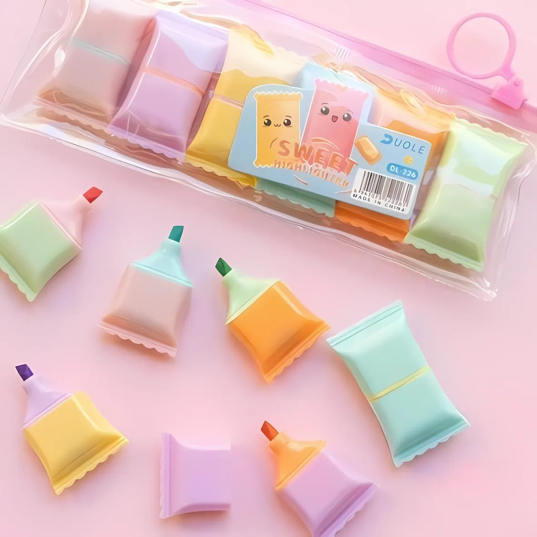 The Sweet Candy Highlighter is more than just a practical tool – it’s a cute gift idea for kids, teens and stationery enthusiasts. Perfect for return gifts, birthday party favors or just as a little surprise for someone special. These highlighters are sure to bring a smile to anyone’s face. Their unique design and cheerful colors make them stand out, making note-taking a fun and engaging activity.