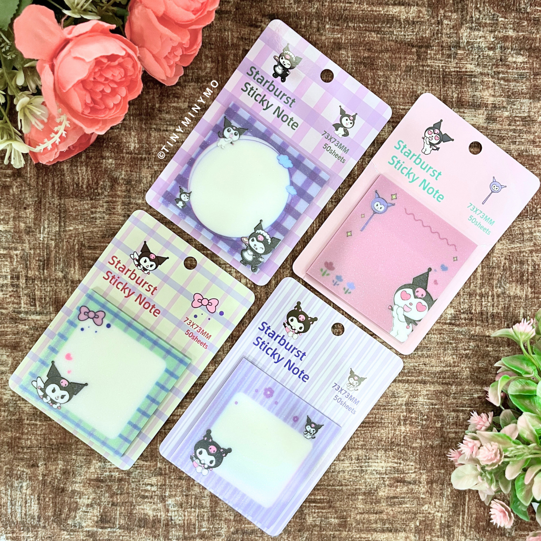 Looking to upgrade your note-taking style or find the perfect gift for a 15 years old girl in India? Say hello to the Kuromi Sticky Notes — a dazzling addition to your stationery stash, featuring the beloved Sanrio character Kuromi, known for her edgy-cute aesthetic!