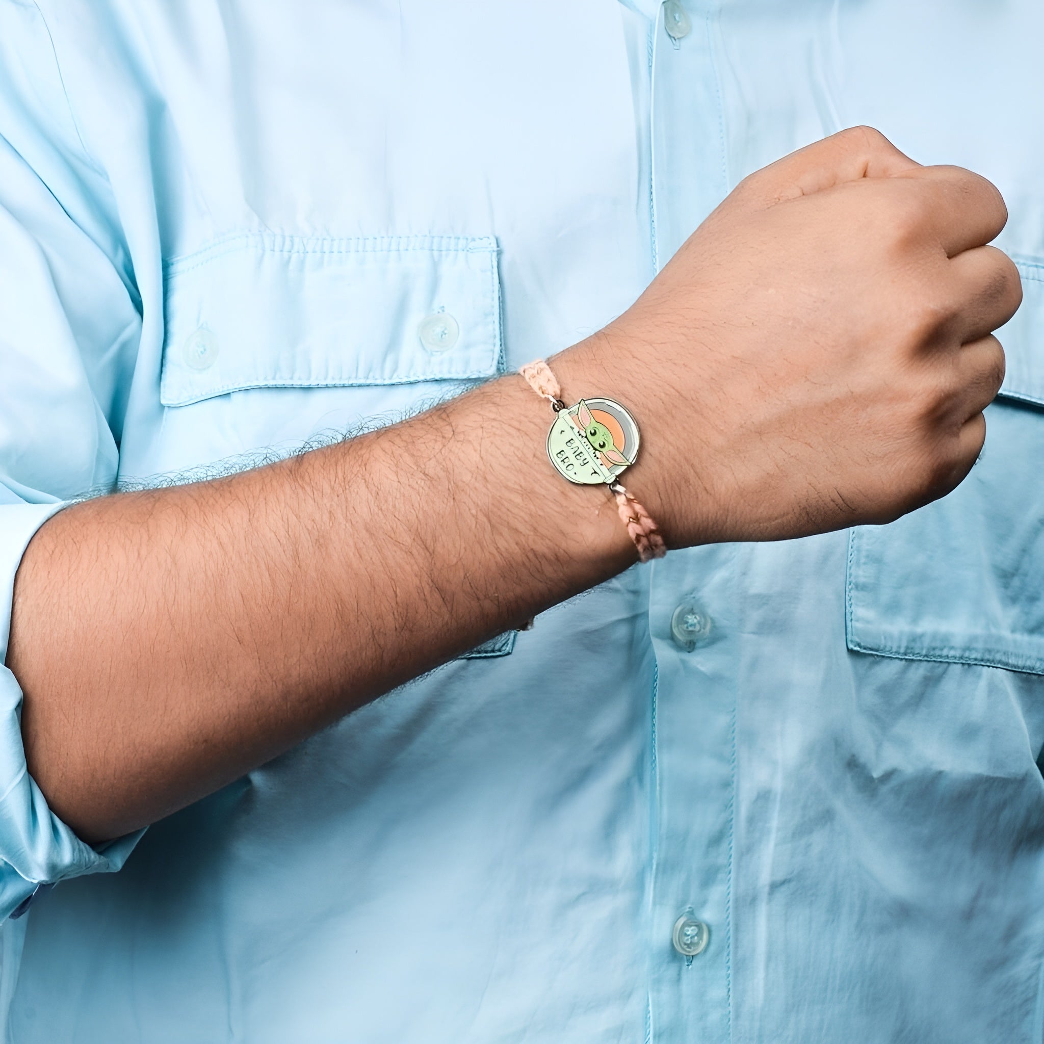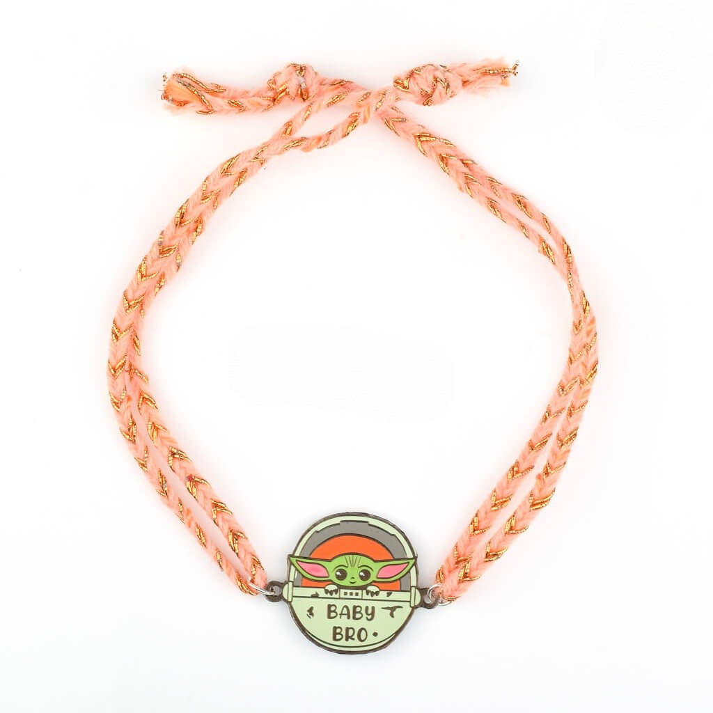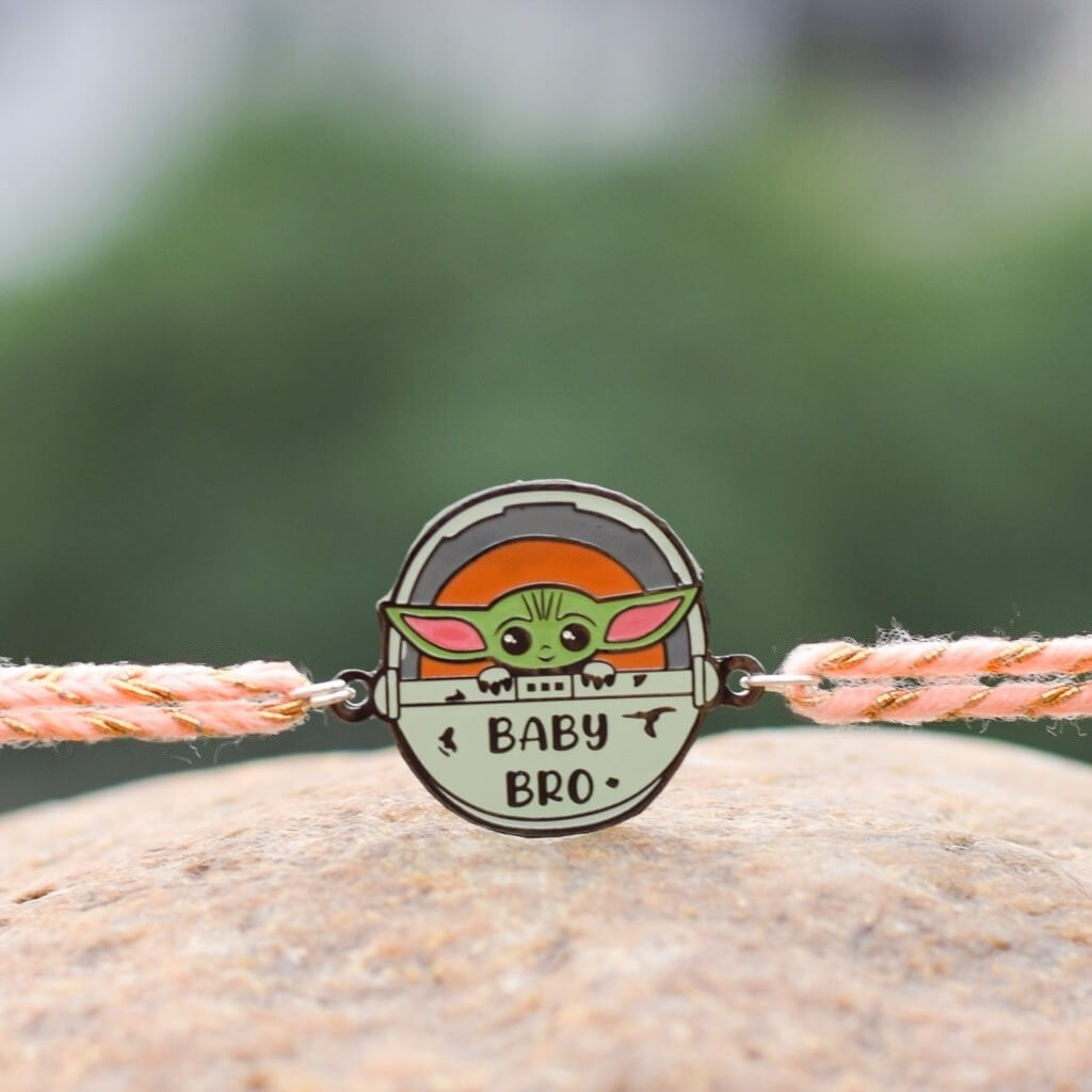 Recognise the adorable bond between siblings with our cute Baby Bro (Yoda) Metal Rakhi. Just like Grogu your little brother holds a special place in your heart and this rakhi perfectly captures that affection. Shop online at Tinyminymo for a unique and cute rakhi that symbolises your precious Bro-Sis connection. Show your love with this delightful Rakhi that reflects the strong and endearing bond you share!!