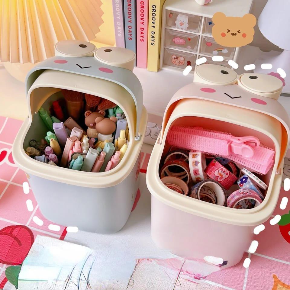 Add a touch of whimsy to your desk with this lovely Big Eye Frog Desk Accessory. Crafted with attention to detail, this wonderful ornament features a frog with oversized, googly eyes that exude personality and charm. Perfect for bringing a smile to your face during long work hours or as a conversation starter in your office space, these Desk Bins are made of high-quality materials, making it durable and are designed to last. The Big Eye Frog Desk Accessory comes in three charming colors: Pink, Blue and Green. Whether you're a frog enthusiast or simply love quirky decor, this Big Eye Frog Desk Accessory is sure to brighten up your workspace.