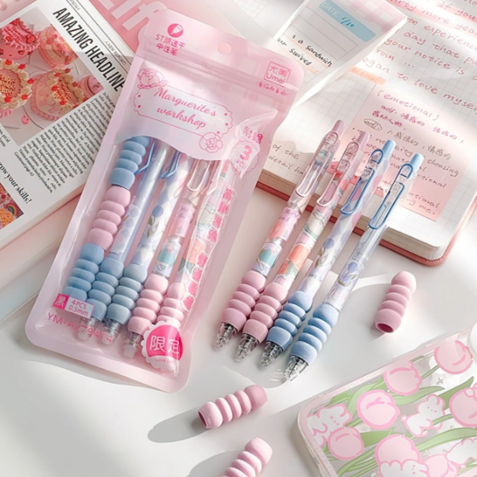 The Cushion Grip Floral Gel Pen is the perfect companion for your writing endeavors. This lovely pen is not just a writing tool, it's a treat for your senses. With its cute design and comfortable grip, it makes every stroke on the page a joy.