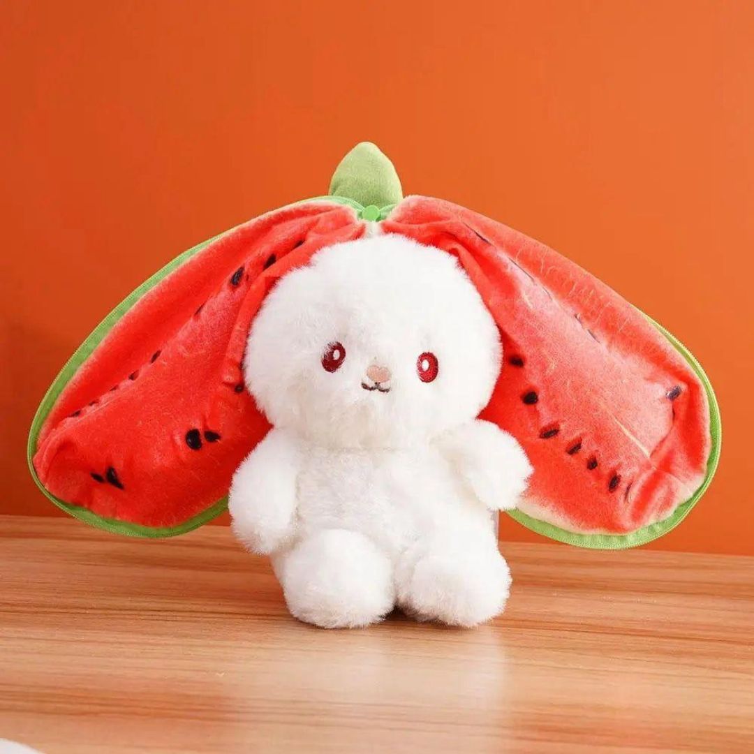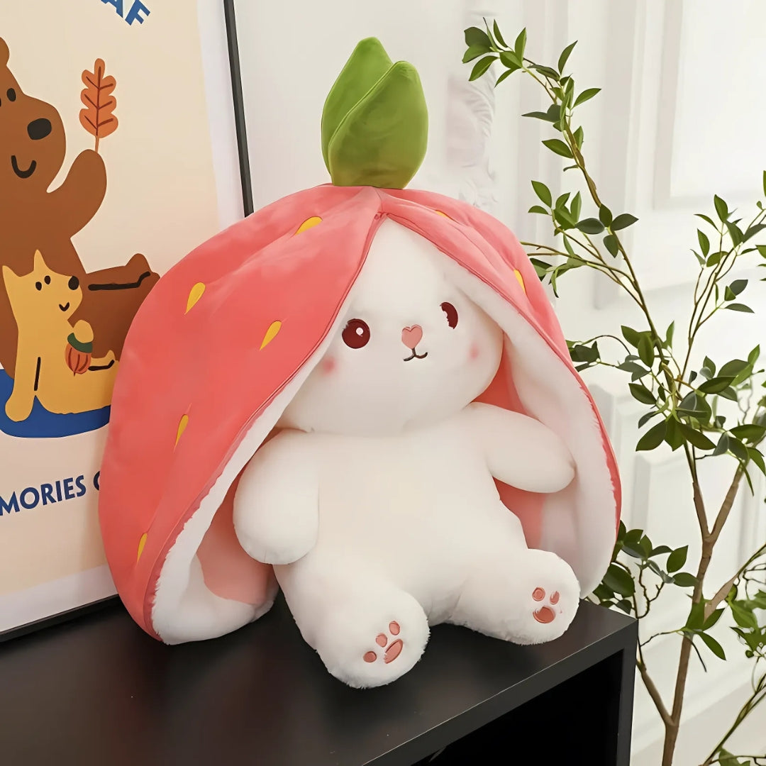 This plush toy makes for a heartfelt gift for a variety of people. Whether it’s to show extra love to your girlfriend or to surprise your sister with something whimsical, this bunny plush in its fruity cover is a perfect way to share some warmth. Its cute and playful look is also great for friends who enjoy quirky items and imaginative toys. Spread joy and make someone’s day brighter with this lovable bunny plushie.