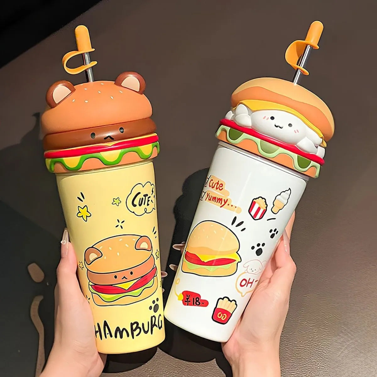 Cute Fast Food Sipper (635ml), Burger-Inspired Steel Tumbler that Makes Hydration Fun