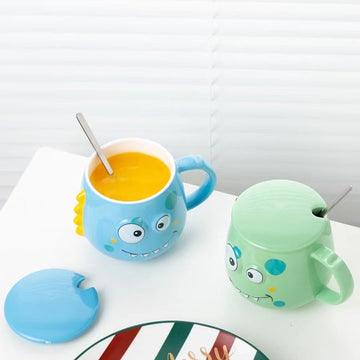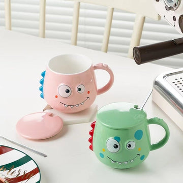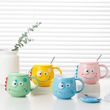 Add a cute little buddy to your mugs collection. Introducing these adorable Dino Mugs which come with Lid and spoon to make your mornings happy or to cheer you up after a tiring day at work. With easy to carry quality and large capacity, this mug has four adorable colors to choose from! Put on the lid to keep your drink piping hot in between the sips. An apt gift for any kid or adult who likes to stay hydrated and could use a friend. It is a premium quality product and is definitely a MUST-HAVE!!