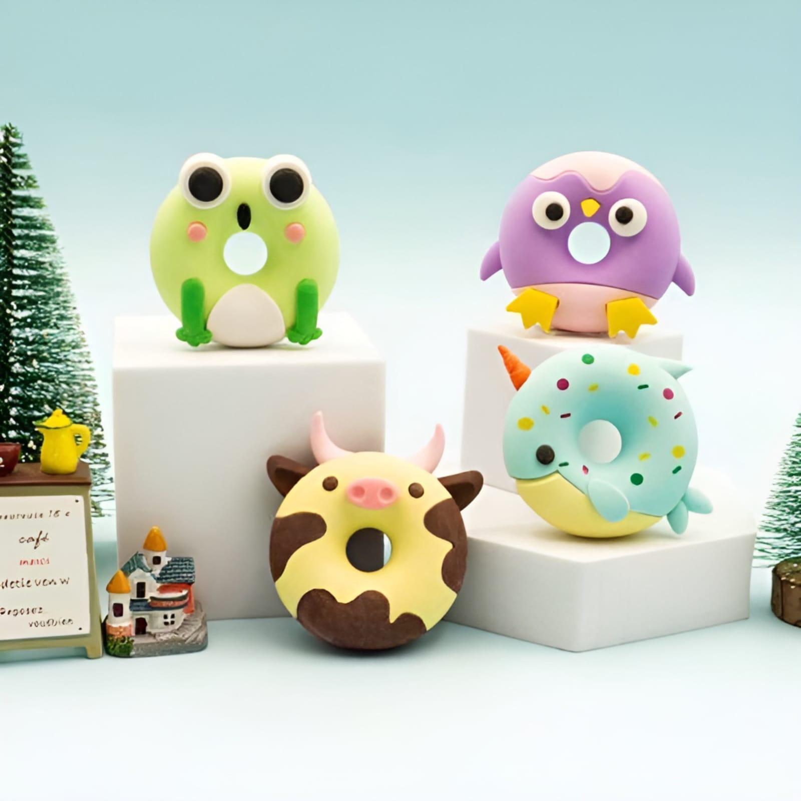 Introducing The Donut Animal Eraser, a lovely and high-quality stationery item that will capture your heart with its cute design and exceptional functionality. Crafted from top-notch materials, this eraser is shaped like a delicious donut, featuring the endearing faces of various cute animals including cow, penguin, frog and fish. This whimsical combination of a donut and adorable animal faces creates an eye-catching and playful aesthetic that is sure to bring a smile to anyone's face.