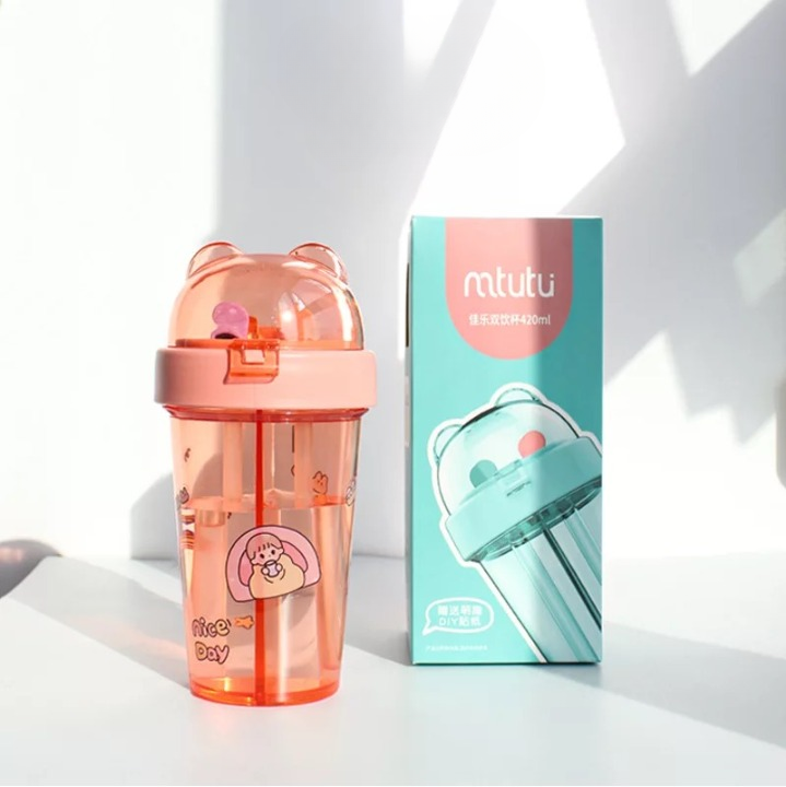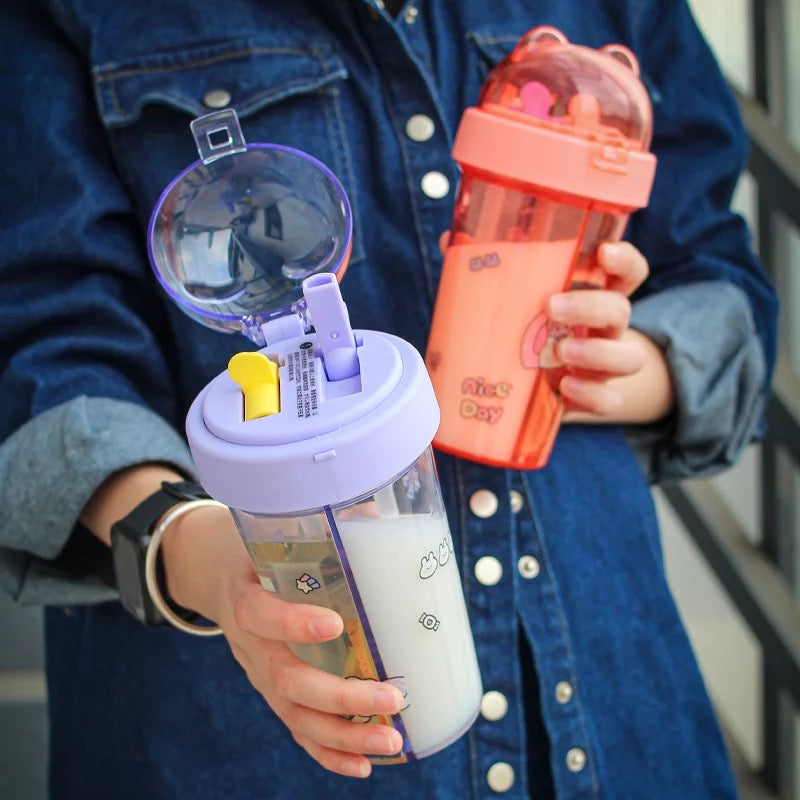 Introducing our amazing Double Sipper Bottle! Made from high-quality plastic that is BPA-free and food-grade, this cute sipper double bottle is not only safe but also durable. It has a compact size making it convenient to carry wherever you go. With a generous capacity of 420 mL, it can hold enough liquid to keep you hydrated throughout the day.