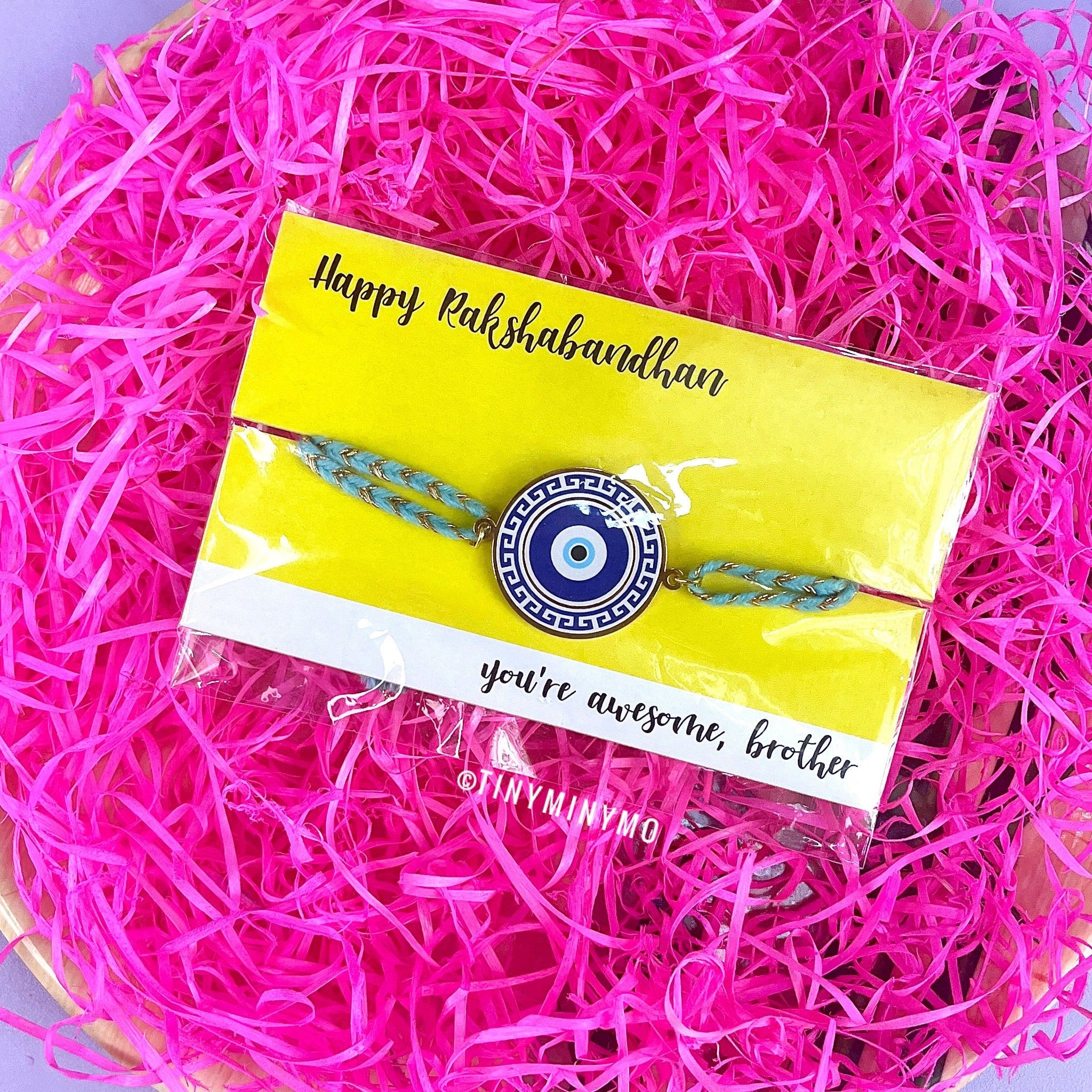 Choose the Evil Eye Metal Rakhi from Tinyminymo to make this Raksha Bandhan truly special and meaningful. Shop now and explore our collection of unique and thoughtful Rakhi's to elevate your celebration!!