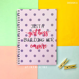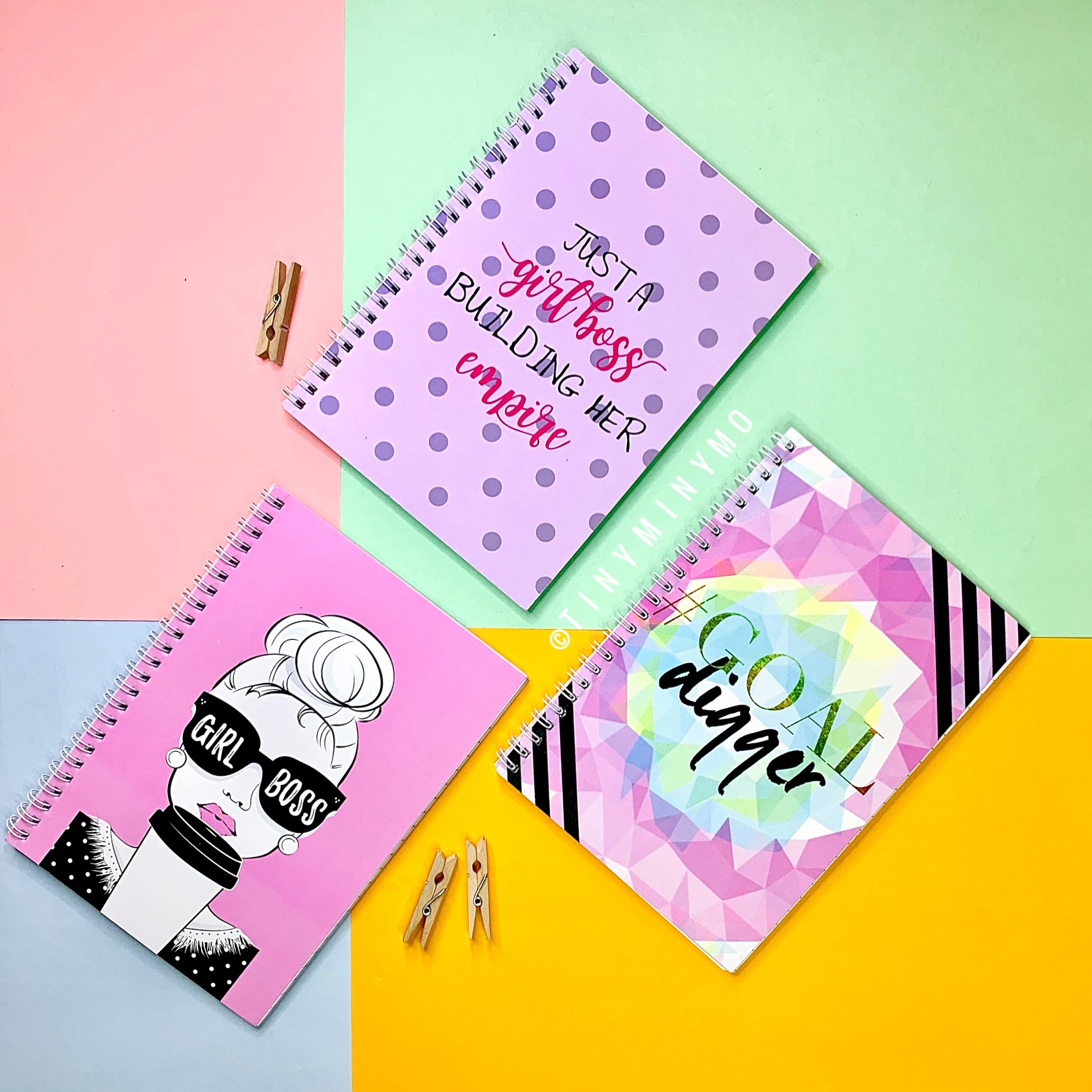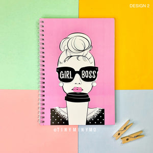 Design number mentioned on the top right corner of the pictures. Don't miss out these Girl Boss Spiral Notebooks and gift it to the special lady of your life!