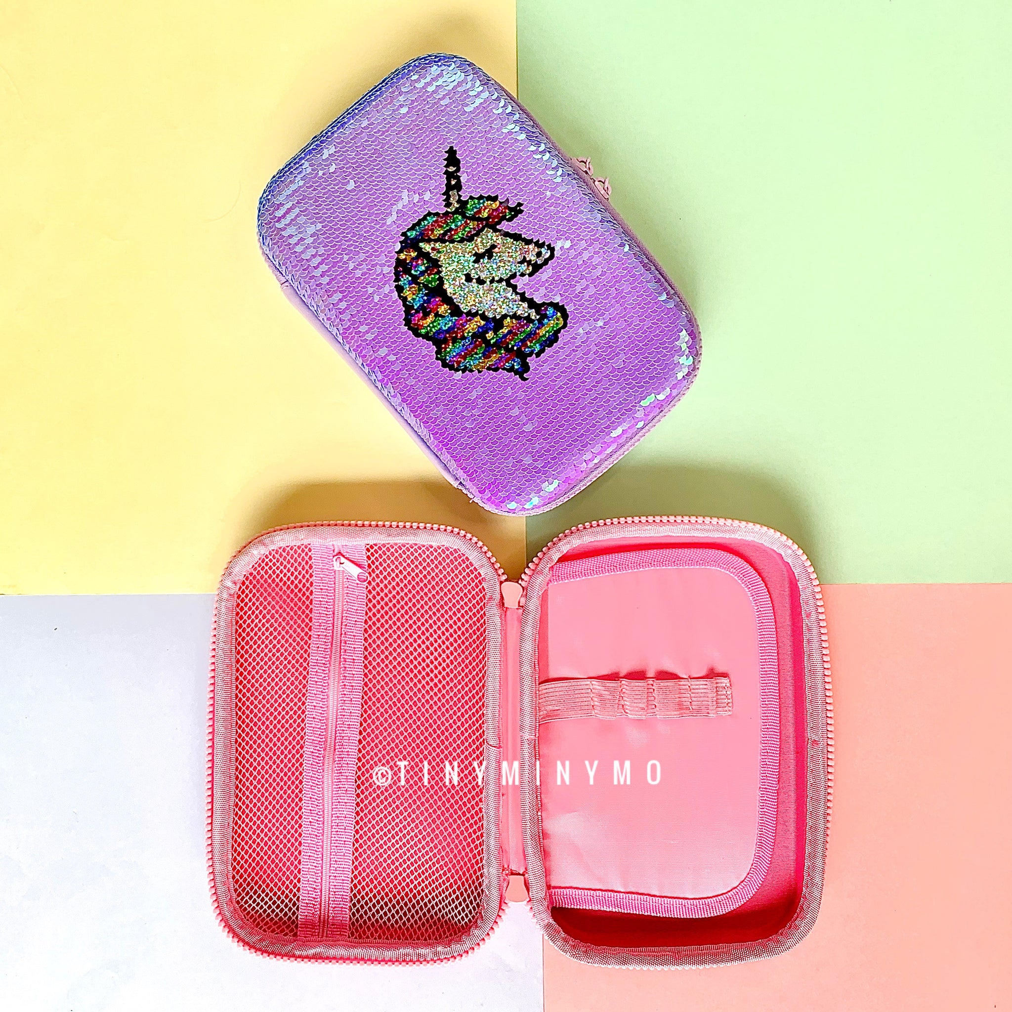 This Glitter Unicorn Organiser is a unique addition for anyone to have. It comes with a large capacity storage and has 5 pen holders, large space for other stationery items and a mesh inside for partition with 1 compartment zipper. It is also a great gift for anyone who loves to stay organised. Adding to your collection, this organiser keeps your stuff organised in a pretty stylish way!!