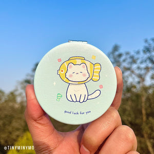 Discover the Good Luck Kitty Pocket Mirror, a lovely and practical accessory that combines both functionality and cuteness. This pocket-sized mirror is designed to be easily portable and compact, making it a convenient addition to your purse, pocket or desk drawer. With its small dimensions, you can carry it with you wherever you go, allowing for quick touch-ups anytime and anywhere.