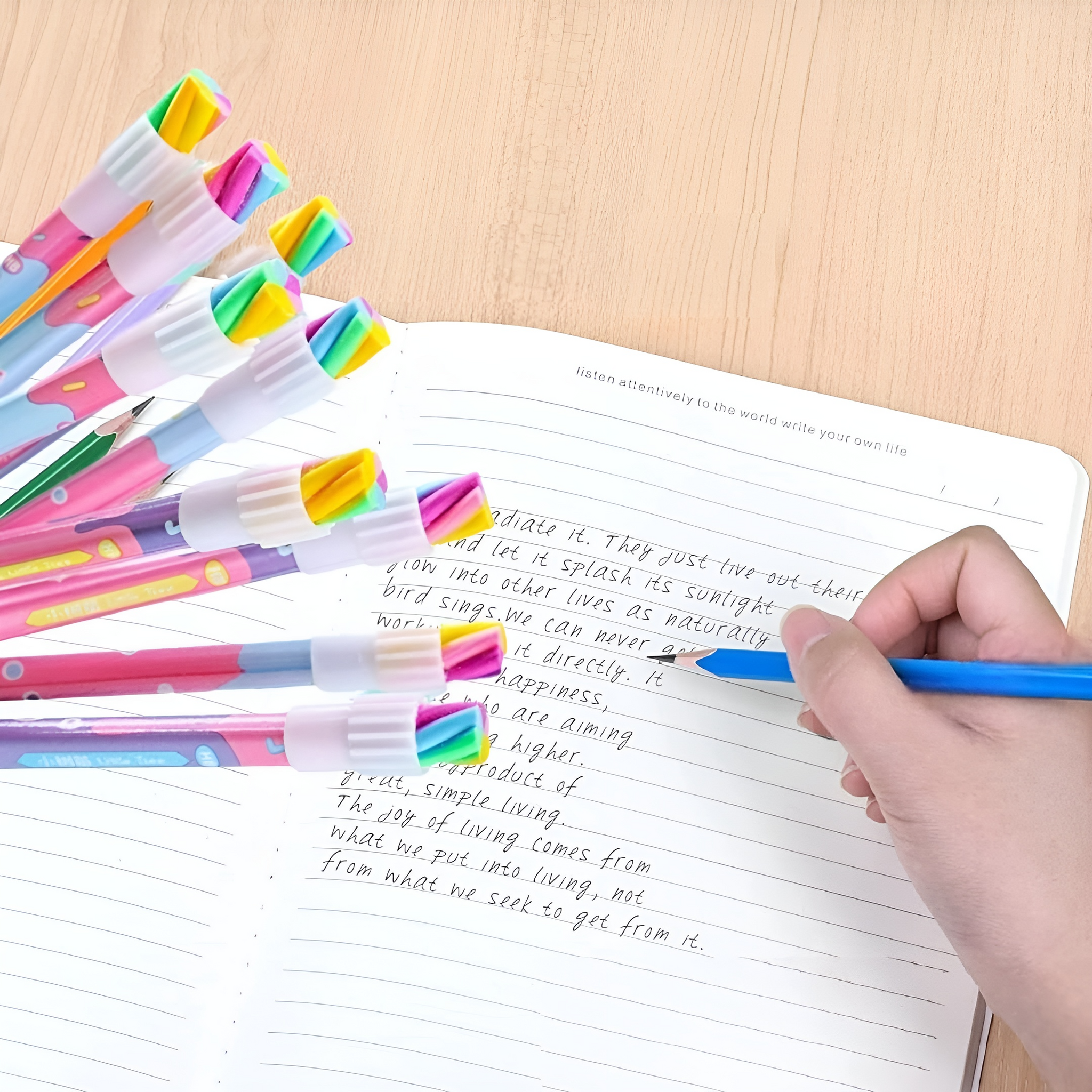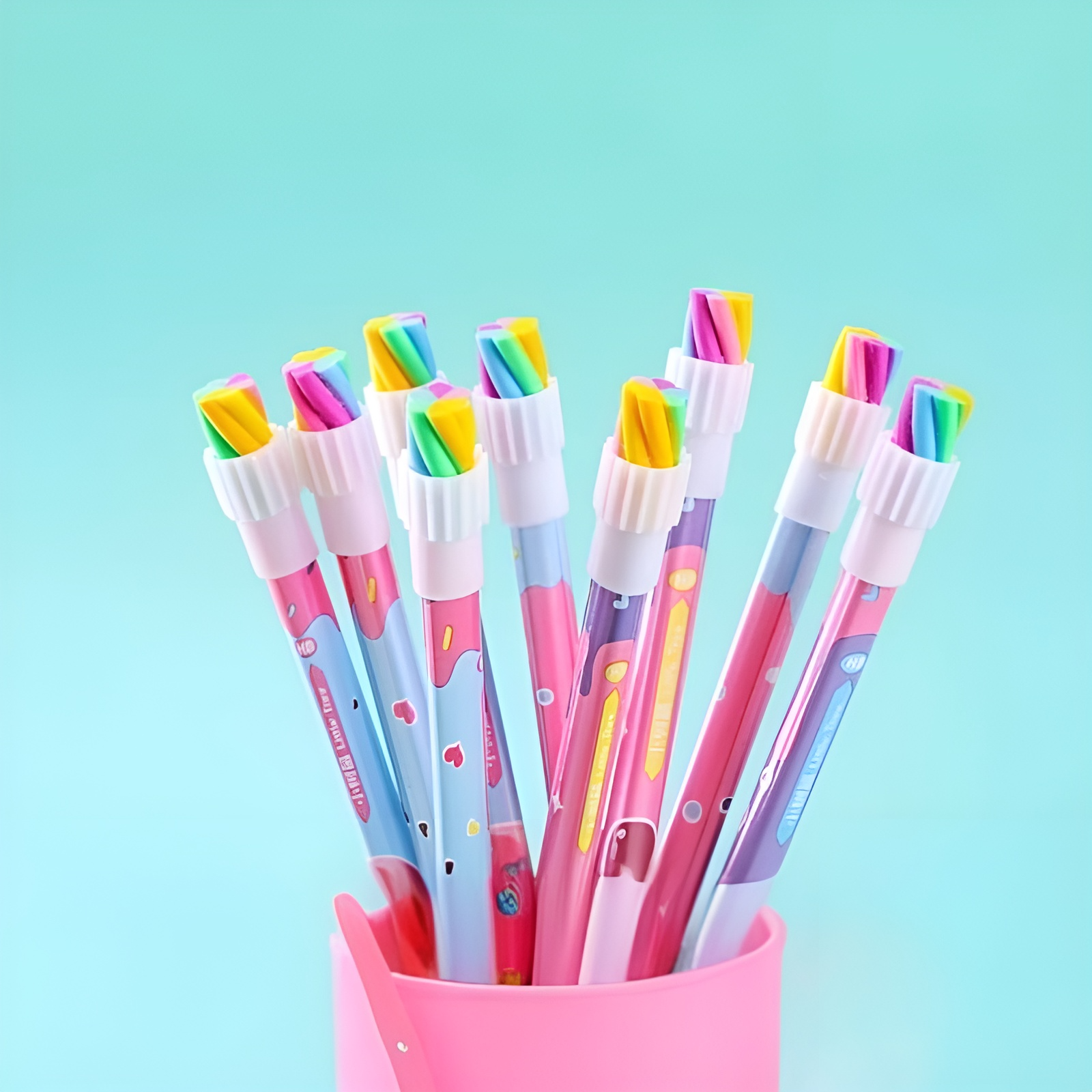 What sets these pencils apart is their 2.2 mm superior quality lead. This graphite lead is not only exceptionally smooth on paper, but it also boasts break-resistant properties, promising a consistent writing flow and longevity. Whether you're sketching, writing down notes or working on a masterpiece, these pencils offer great performance. As an added bonus, each pencil comes equipped with an attached small but multicolor eraser. And that's not all – this set includes an adorable ice cream-shaped eraser that's sure to steal hearts. These erasers not only erase effectively but also add an extra layer of cuteness to your work desk.