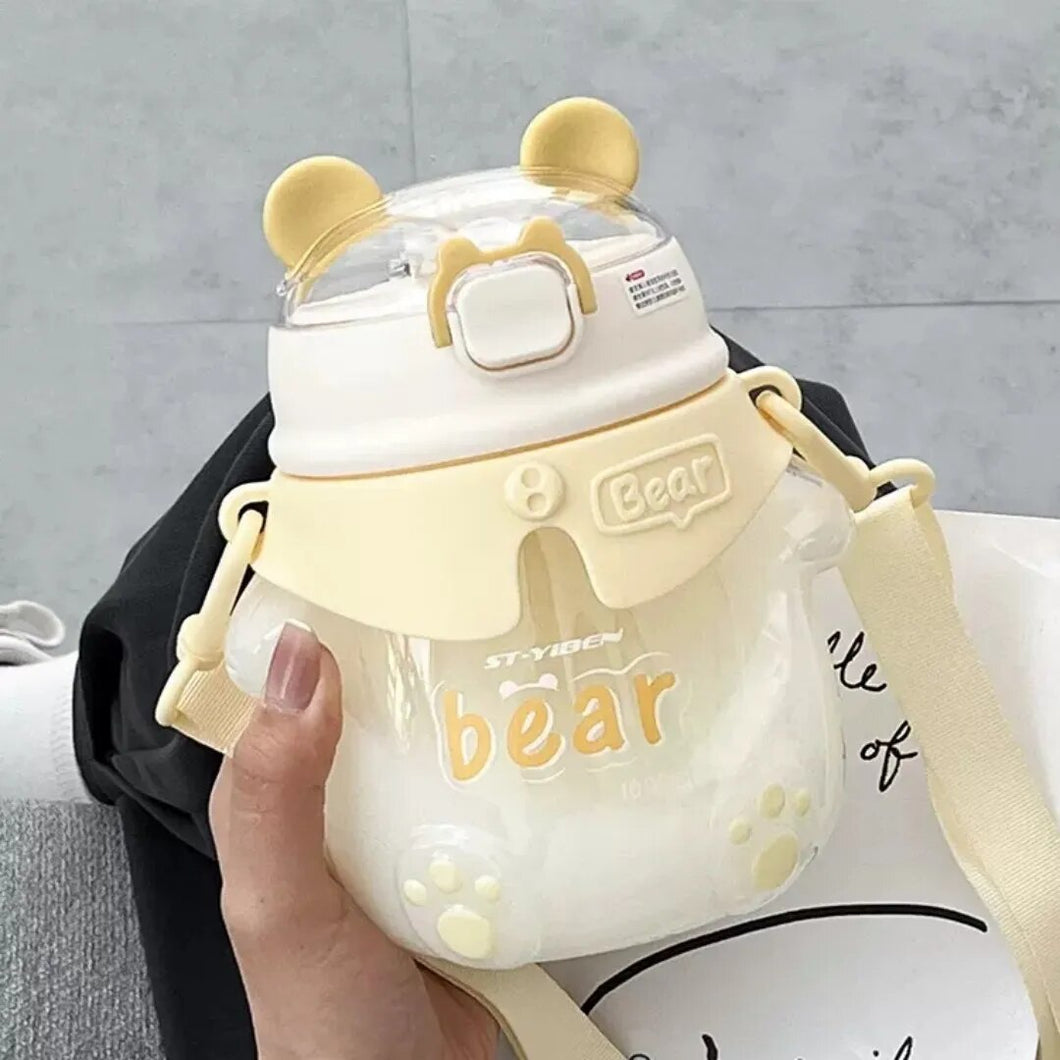 Designed with convenience in mind, this sipper bottle comes with a built-in straw for easy sipping, and a strap for effortless carrying. The cute bear look on the bottle's head adds an extra touch of charm, making it an instant favorite for kids, brothers, sisters and your loved ones who appreciate cute gift accessories.