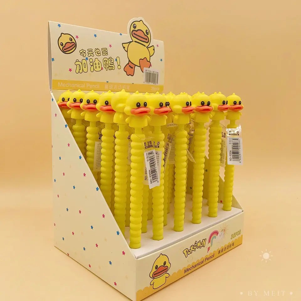 Introducing the Duck Mechanical Pencil - a fun and functional writing tool for all ages. This mechanical pencil features a bright yellow duck design that is sure to bring a smile to your face. With its 0.7mm lead, it's perfect for everyday use, whether you're taking notes in class, jotting down ideas at work, or sketching in your spare time. The lead advance mechanism is smooth and effortless, ensuring a consistent writing experience. This mechanical pencil is a great choice for anyone who wants a reliable writing tool with a touch of whimsy and makes for a perfect gift for all the school going kids who adore fancy stationery!!