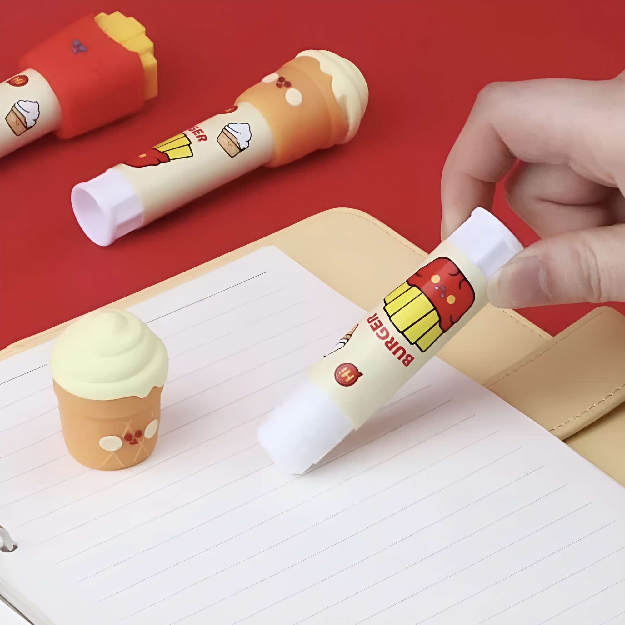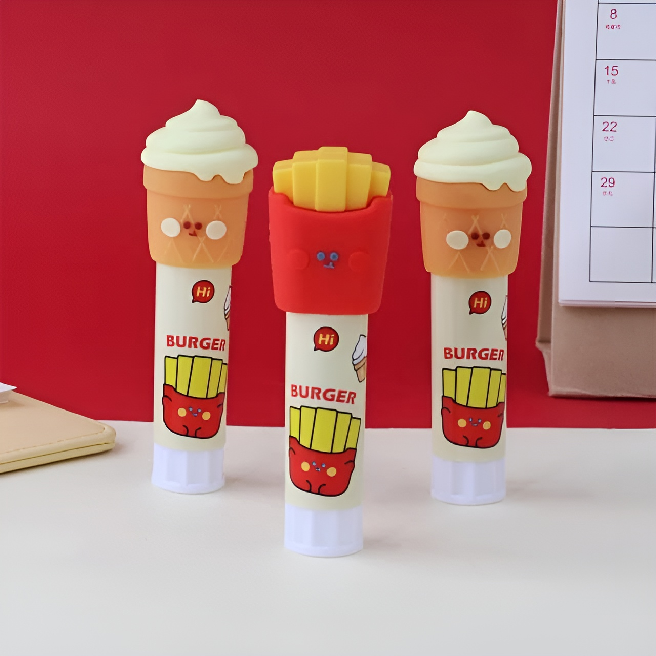 Crafted to capture attention, the Kawaii Fast Food Gluestick ensures that your gifting endeavors are memorable and heartwarming. Whether you're celebrating Children's Day, Return gift, seeking an exceptional gift for kids or surprising a stationery enthusiast, Tinyminymo online gifting store has got you covered. Uniting practicality with cuteness, this gluestick brings joy to both schoolwork and creative projects making them an ideal addition to any stationery collection. For those in search of a unique and utterly cute present, look no further than Tinyminymo's Kawaii Fast Food Gluestick, a cute embodiment of creativity and imagination!!