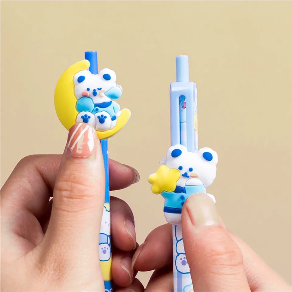 Introducing the adorable Kawaii Night Bear Gel Pen, a must-have writing instrument for all the stationery enthusiasts out there! This enchanting pen features three charming designs, each showcasing a Cute Bear with star, with moon, and a bear cuddling a teddy.