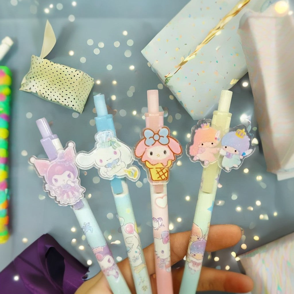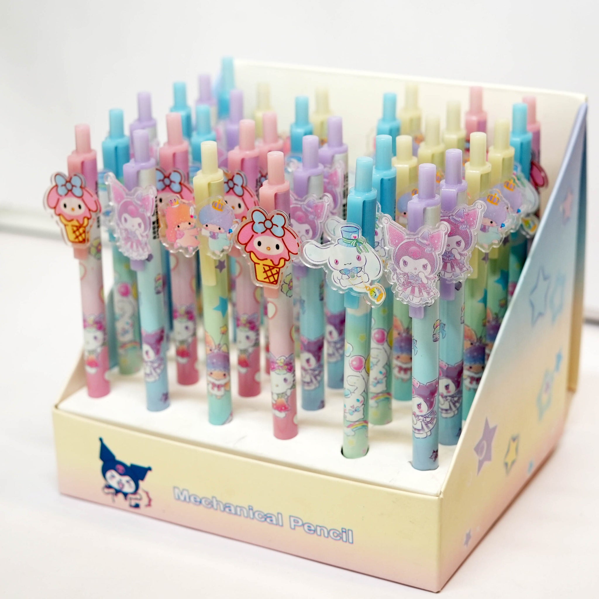 The Kuromi Mechanical Pencil is a cute collection featuring four beloved characters: My Melody, Cinnamoroll, Twin Sisters and Kuromi. Designed with care and crafted for precision, this mechanical pencil is perfect for girls and Kuromi lovers of all ages. Each pencil showcases the unique charm and cuteness that Kuromi is known for, making them a must-have accessory for any stationery lover. The vibrant colors and adorable designs add a touch of cuteness to your everyday writing experience, making even the simplest tasks a joyful affair. Not only are these mechanical pencils functional and durable, but they also make for a fantastic gift item for your daughter's special occasions. Whether it's her birthday or you simply want to surprise her with a thoughtful present, these cute pencils are sure to bring a smile to her face. She'll love showing off her favorite Kuromi characters while writing, drawing or completing school assignments.