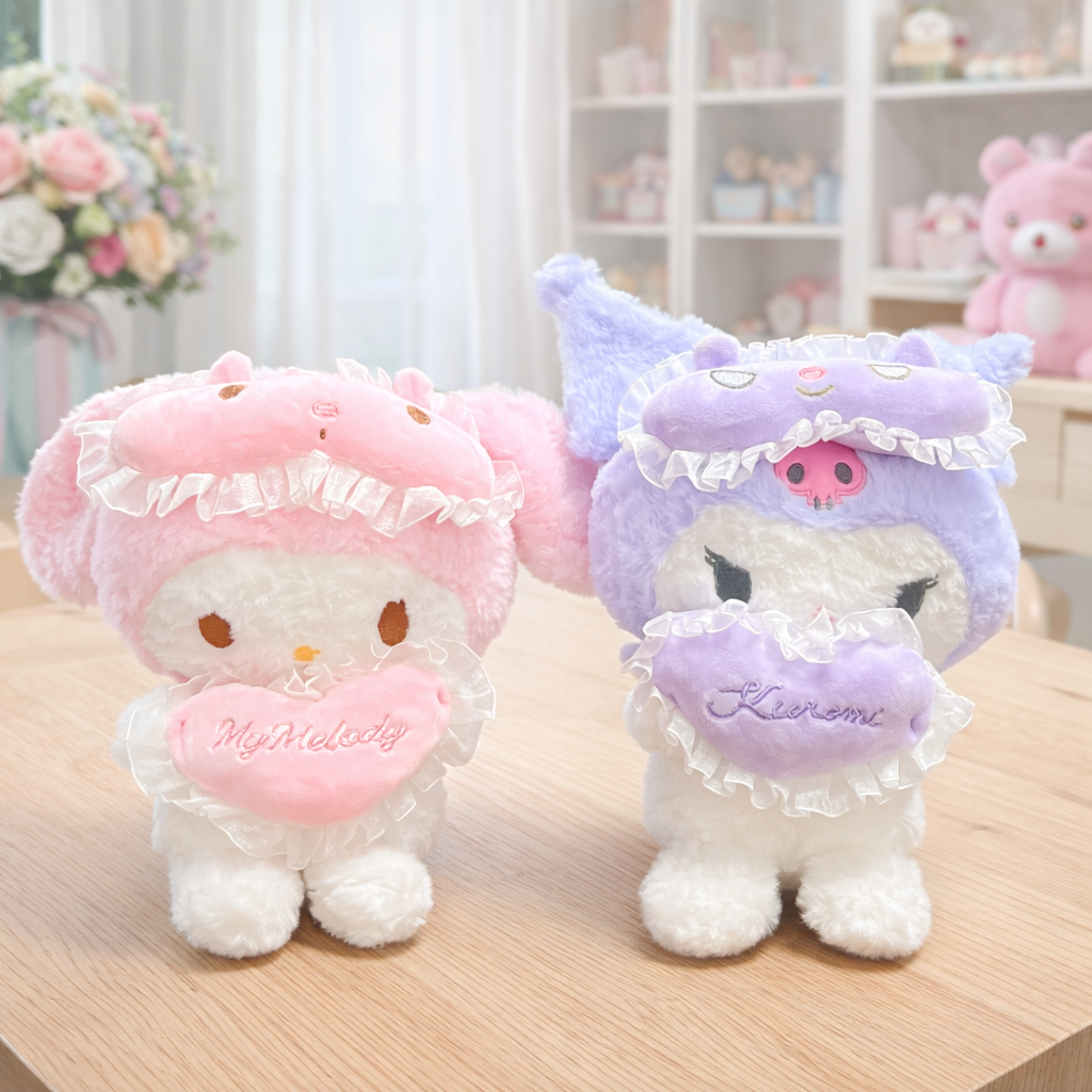 Whether you're a dedicated My Melody or Kuromi fan or are simply looking for a cute and cuddly companion, this plush toy is sure to capture your heart. Its soft, plush exterior makes it perfect for snuggling up with during bedtime or simply adding a touch of charm to any room decor. Plus, its compact size makes it easy to take on adventures, whether it's a trip to the park or a cozy day indoors.