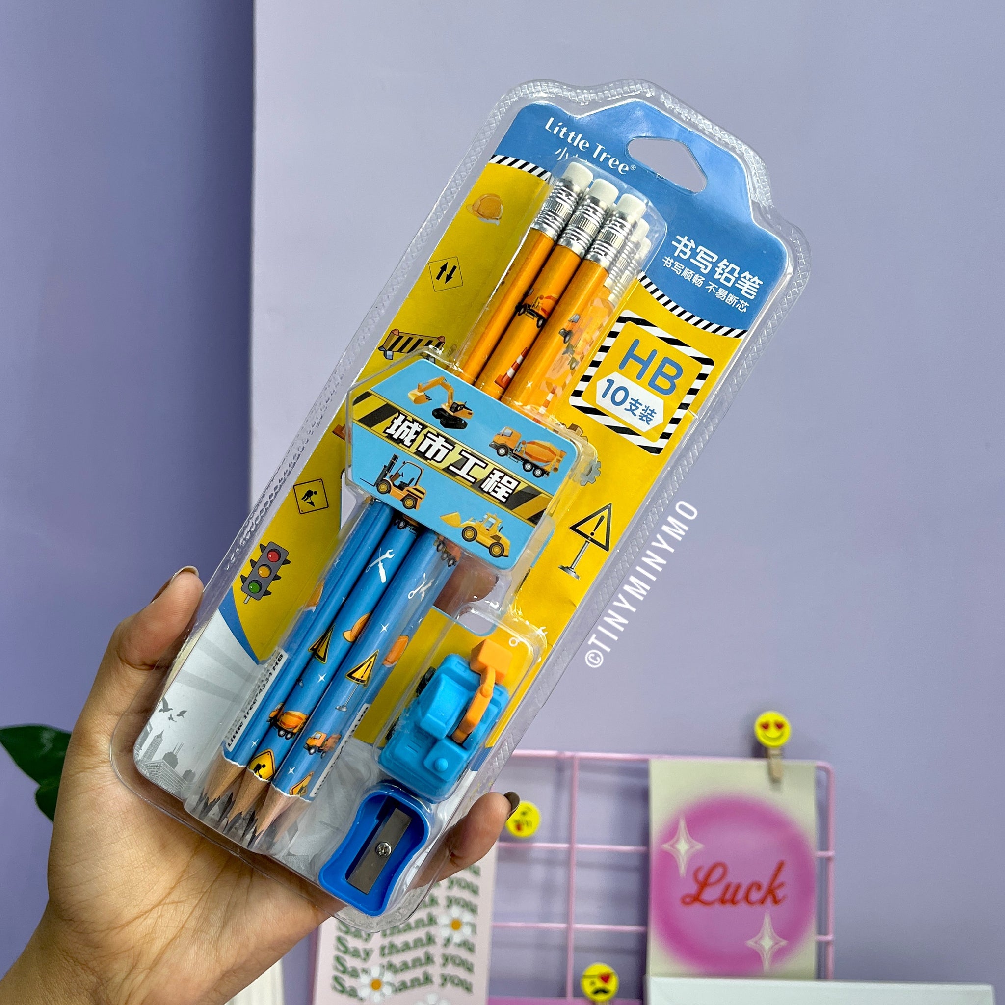 - Content: 10 pencils with 1 eraser and 1 sharpener