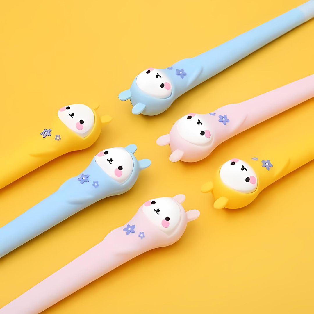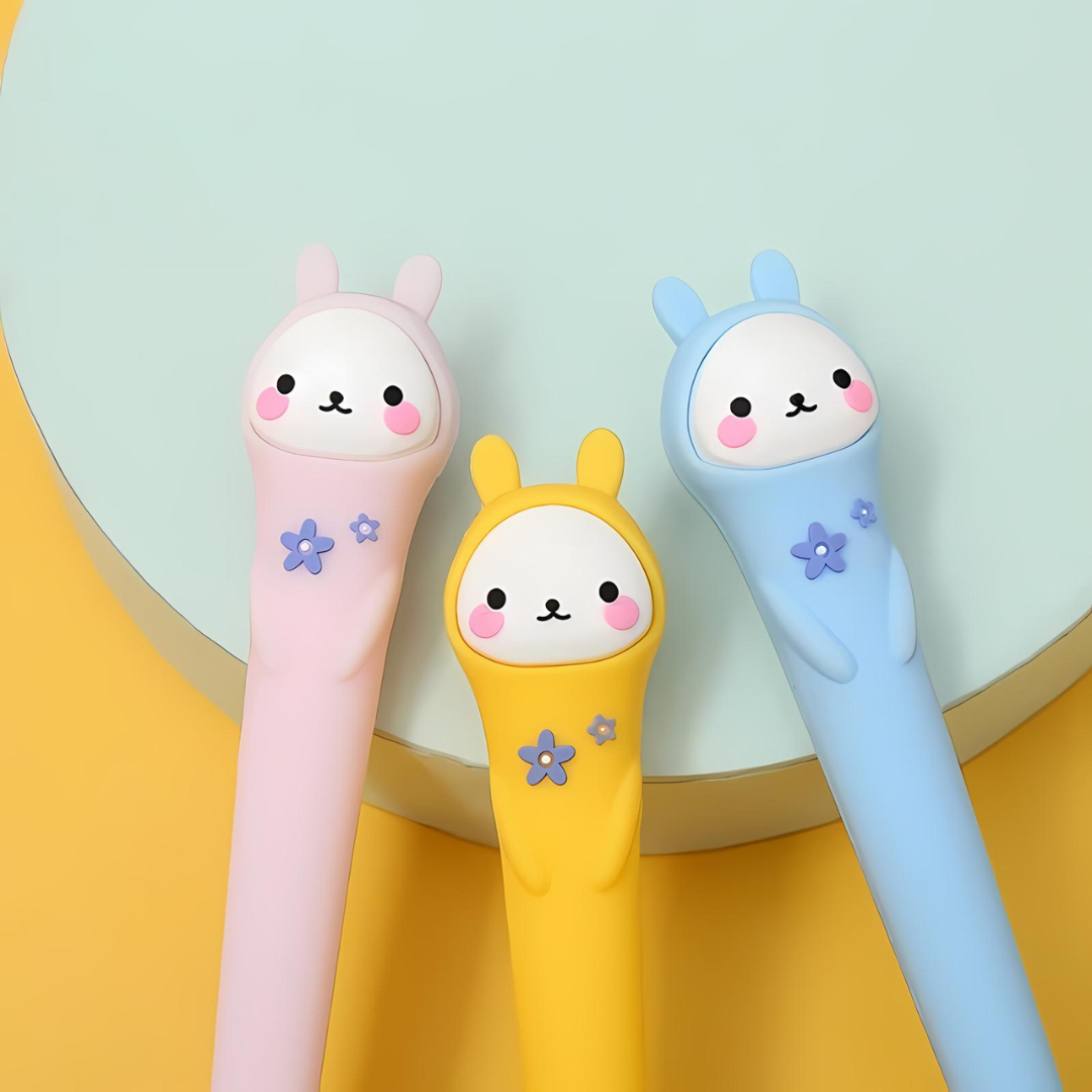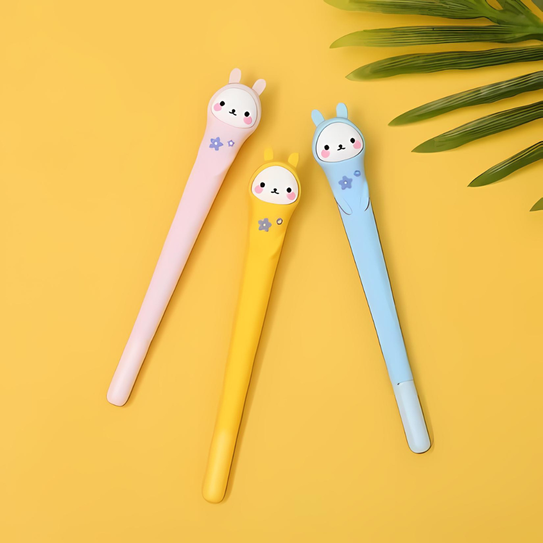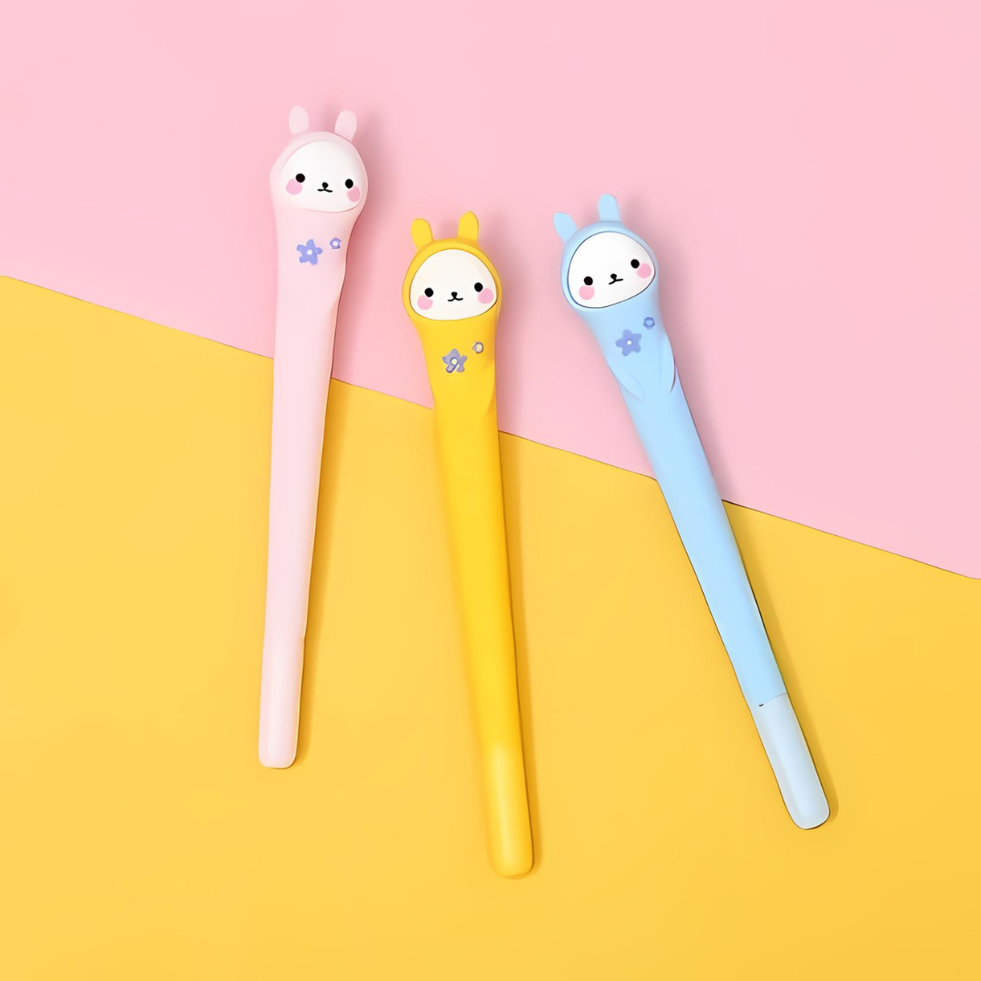 Introducing our Lovely Bunny Gel Pen - the adorable stationery essential that's guaranteed to brighten up any kids day! With its lovely bunny face and vibrant colors, this pen is not just for writing but for spreading smiles and joy with every stroke.