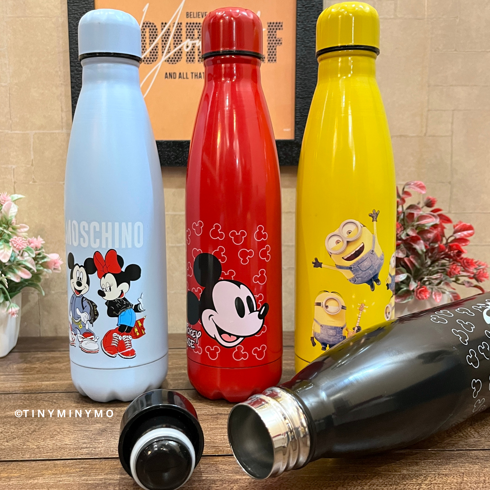 Make hydration an exciting adventure with our Character-Themed Metallic Bottle, available in four vibrant designs: Mickey in Black and Red, Mickey and Minnie in Ice Blue and Minion in Bright Yellow. These metal tumbler are not only visually striking but also highly practical, making them ideal for school, travel and daily hydration needs.