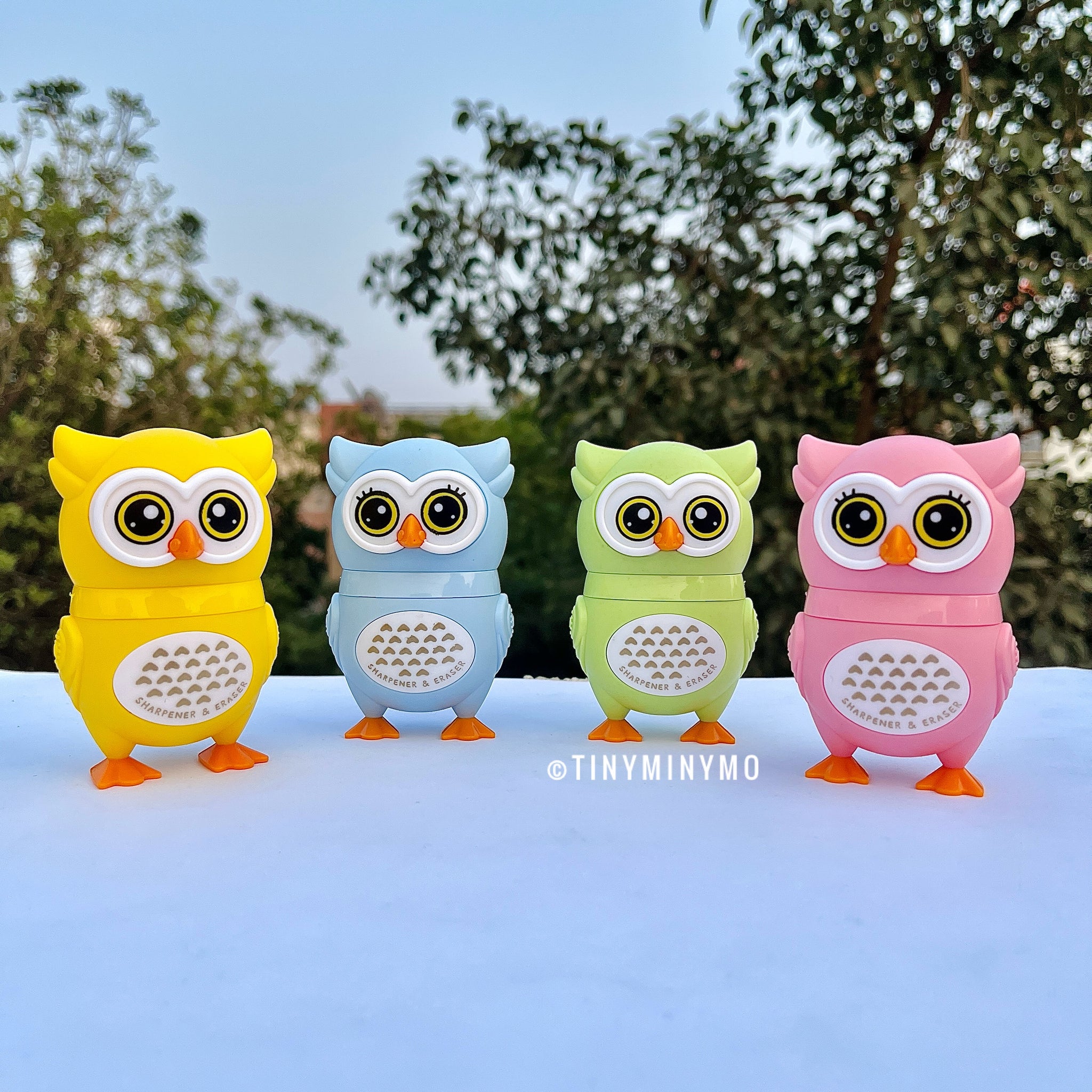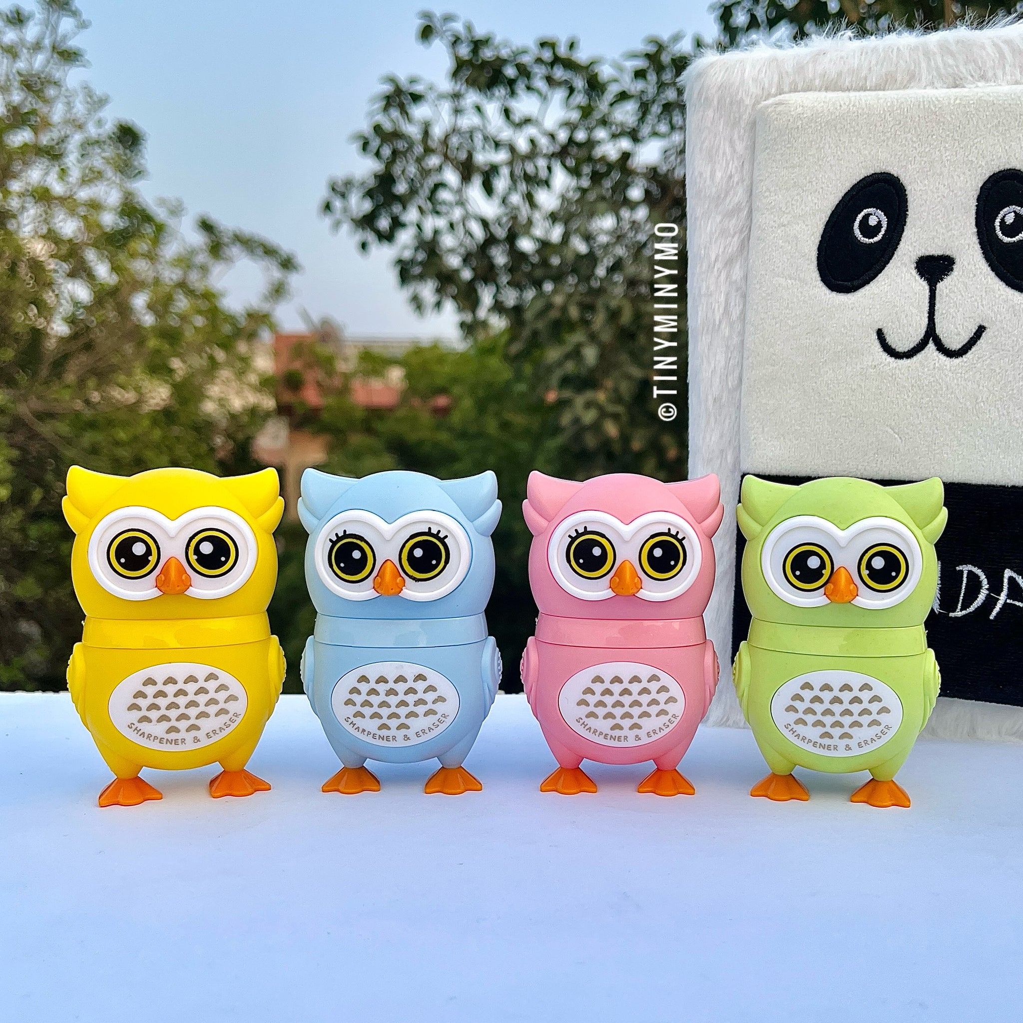Hoot hoot! Meet your new study buddy, the Owl Eraser cum Sharpener! This wonderful little tool is a must-have for your stationery collection. Available in four lovely colors - Yellow, Green, Pink and Blue, this wonderful little tool efficiently sharpens your pencils, ensuring that you're always ready for a productive session. On the other hand, it's a reliable eraser for correcting mistakes without missing a beat in your work or study. Designed to cater to both students and artists, it stands out as a versatile and quirky piece of stationery. Its unique owl design adds a touch of whimsy while ensuring practicality, combining an eraser and a sharpener in one compact tool. Perfect for keeping you or your child engaged in studies, the Owl Eraser cum Sharpener transforms boring tasks into fun activities.