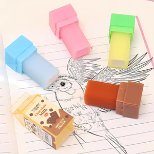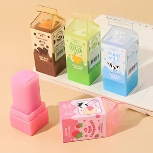 Packaged Milk Kawaii Erasers are made from high-quality, non-toxic materials. The Packaged Milk Kawaii Erasers are a enjoyable blend of functionality and cuteness. Designed to provide a smooth and clean erasing experience, these adorable erasers not only work efficiently but also bring a smile to your face with their unique milk carton design. Their durability and premium build makes them a reliable stationery item for kids, students and stationery lovers alike.