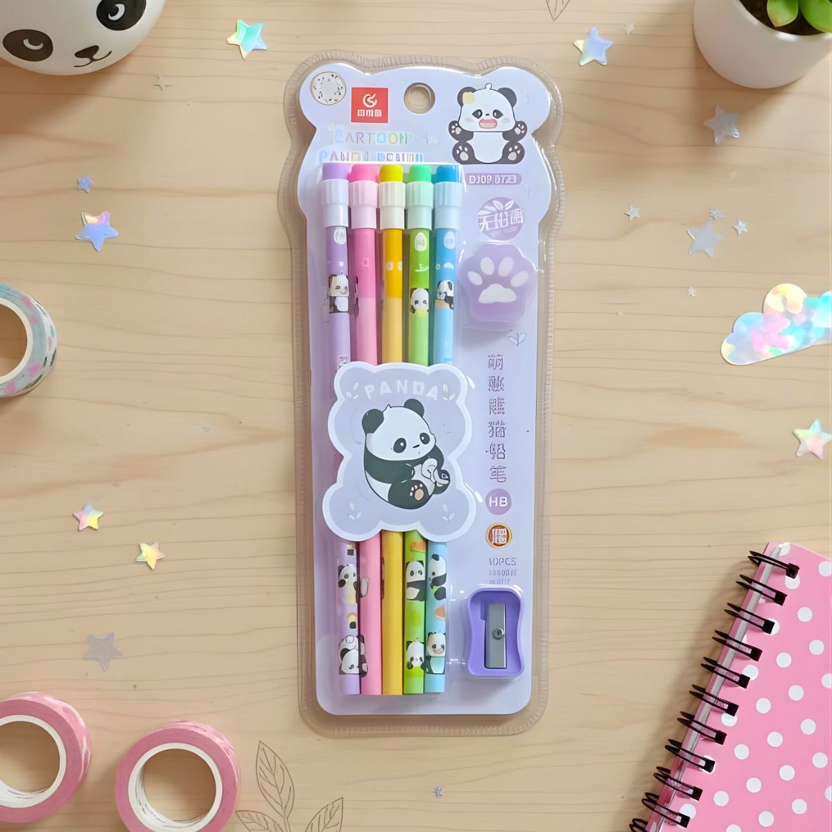 Panda Pencil Set – Cute Pastel Pencil Pack for Kids, Students & Stationery Lovers