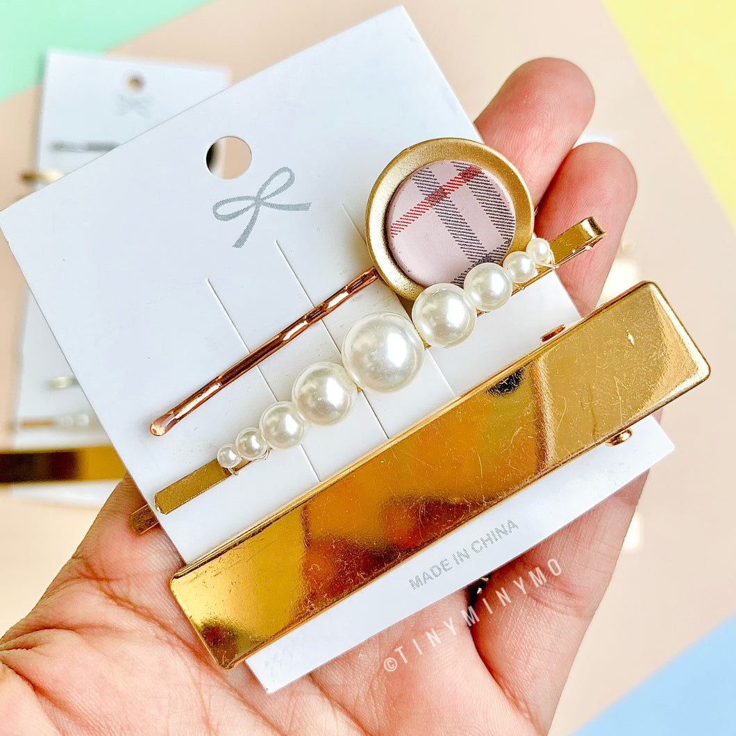 Looking for some fun and prettiness to add to your everyday outfits at an affordable price? You must not miss to check out these very pretty Plaid Print Hair Pin Set that comes in a set of 3! Easy to use and carry around, these pretty hair pins are sure to make heads turn. Gorgeous and extra ordinarily beautiful, these Hair Pins come in extremely handy and are worth every penny you spent on them. It matches with any outfit of yours and is suitable for any age group. Extremely Gorgeous these Hair Pins are a show stealer! A timeless piece of jewellery making all your outfits stand out. Get it for yourself or gift it to beautiful girls in your life, these clips will always be loved, used and cherished. It includes a Plaid button hair pin, a Pearl beaded hair pin and a gold crow clip!!