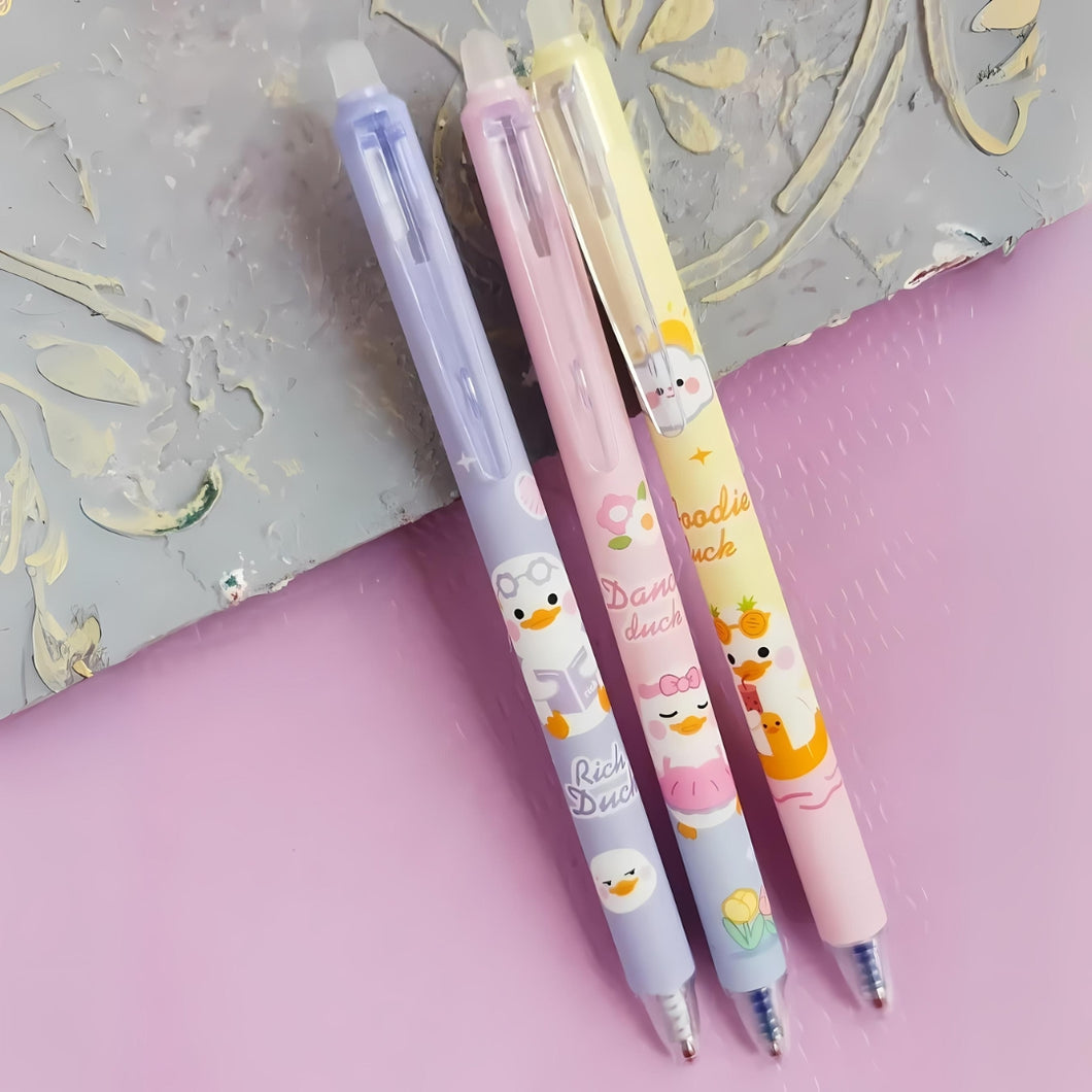Meet the Rich Duck Erasable Gel Pen Set: your ticket to a whimsical writing experience, where quality meets creativity! Crafted with precision and care, each pen in this set boasts premium quality materials, ensuring a wonderful writing experience every time. This pen is a reflection of unique personalities, adding a touch of whimsy to your writing routine. With vibrant blue ink that flows smoothly and dries clear, these gel pens effortlessly bring your thoughts to life on paper. Say goodbye to smudges and mistakes with the erasable feature, allowing you to create with confidence.