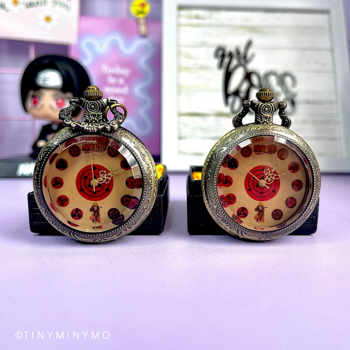 Crafted with meticulous attention to detail and precision, each pocket watch features the iconic Sharingan eye, capturing the essence of the Uchiha clan's fabled ocular prowess. The unmistakable crimson hue and intricate design pay homage to the series rich mythology and characters.