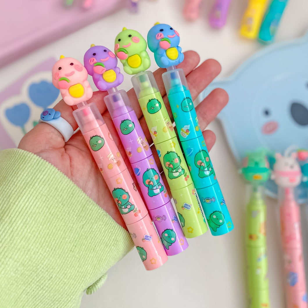 What sets this highlighter apart is the cute dino attachments on each pen, adding a touch of fun and joy to your study sessions or work environment. It's not just a stationary item, it's a great choice for various occasions, such as birthday gifts, return gifts for events or even as a sweet Children's Day gift for kids.