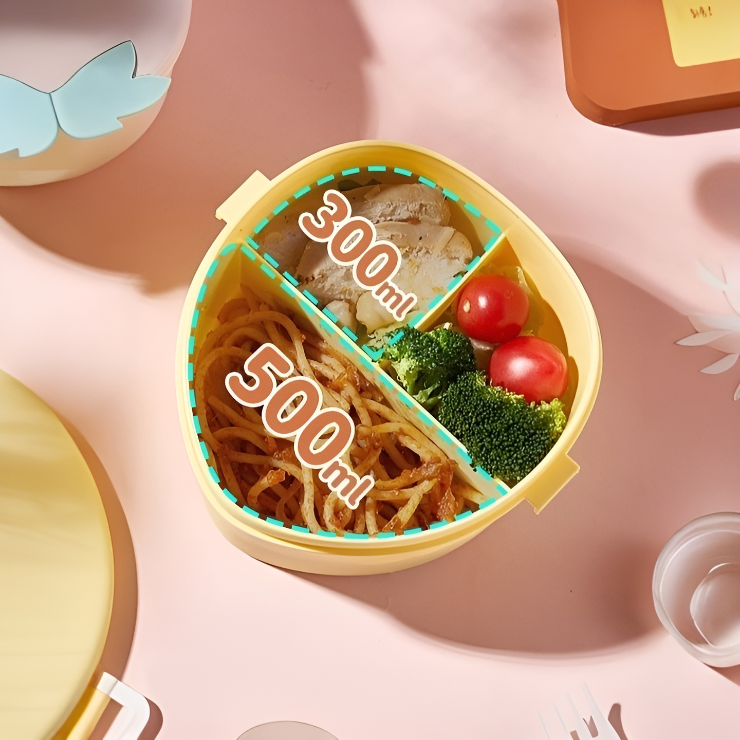 To add to its cuteness, the lunch box includes a cute spoon with a little bear on its handle and a fork featuring a lovely bunny design. These utensils make mealtime even more enjoyable for kids. Carefully crafted to maintain the freshness and warmth of the food, this lunch box is perfect for school lunches, picnics or outings. With a generous capacity of 1000ml, you won't have to worry about running out of storage space.